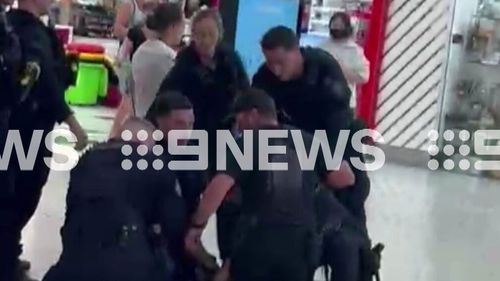 Полиция арестовала 21-летнего мужчину после ужасающего инцидента, произошедшего в западной части Сиднея. Сотрудники полиции были вызваны в торговый центр Westfield Mt Druitt после того, как мужчина, предположительно вооруженный ножом, пробежал по торговому центру вскоре после 14:00. На видеозаписи из фуд-корта видно, как полиция окружает лежащего на земле подозреваемого, у ног которого видно оружие. ЧИТАЙТЕ ДАЛЕЕ: Премьер-министр отклонил просьбу семей жертв стрельбы в Бонди