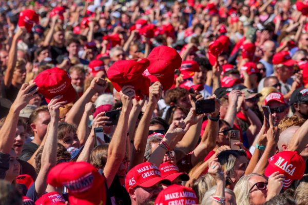 Сторонники Дональда Трампа поднимают кепки с надписью «MAGA» в Батлере, штат Пенсильвания, 5 октября 2024 года. Второй срок — это прелесть.