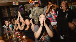 Зрители на вечеринке по случаю просмотра «Love Island USA» в баре Malt House в районе Гринвич-Виллидж в Нью-Йорке, 1 июля 2025 года. Реалити-шоу привлекает зрителей жаркими драмами и невероятными испытаниями, но ещё удивительнее то, как оно объединяет людей. (Ланна Аписух/The New York Times)