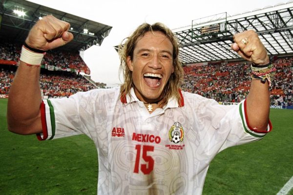 Мексиканец Луис Эрнандес празднует забитый им сравняющий гол в матче против Голландии на чемпионате мира в июне 1998 года. Хэнди описывает эту футболку как «сумасшедшую». Марк Томпсон/Allsport/Getty Images