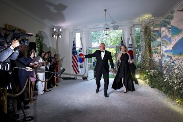 Старший советник Белого дома Митч Лэндриу и Грейс Лэндриу прибывают на государственный ужин в Белом доме в Вашингтоне, округ Колумбия, 26 апреля 2023 года. Фото: Анна Монемейкер/Getty Images.