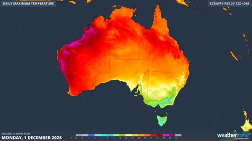 Прогноз температуры по всей Австралии на первый день лета 1 декабря 2025 года. (Weatherzone) Два мощных, но контрастных погодных явления стали причиной этого странного начала лета, сообщает метеорологический канал Weatherzone. В Западной Австралии часто наблюдаемая ложбина движется вдоль побережья, унося горячий воздух из внутренних районов штата в Перт и юго-западные регионы. На северо-западе Западной Австралии также прогнозируется палящая погода в течение следующих двух дней. Бюро метеорологии выпустило предупреждение о сильной волне тепла для региона Кимберли. Тем временем, после необычно холодной поздней весны, зимние условия на юго-востоке Австралии, по прогнозам, сохранятся до начала лета. Холодная погода в Викторианских Альпах и Тасманийском нагорье принесла устойчивые снегопады, и они, вероятно, продолжатся сегодня. Жители Мельбурна будут держать свои зимние шерстяные вещи под рукой, поскольку густые облака и ливни создают ощущение зимы. Первый день после начала лета. Заглядывая вперёд, Перт может ожидать некоторого облегчения жары, когда завтра столбик термометра опустится до максимума в 28 градусов. В Мельбурне потепление ожидается к среде, ожидается максимум в 27 градусов. СКАЧАЙТЕ ПРИЛОЖЕНИЕ 9NEWS : будьте в курсе последних новостей, спорта, политики и погоды через наше новостное приложение и получайте уведомления прямо на свой смартфон. Доступно в Apple App Store и Google Play .