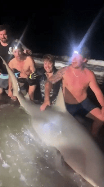 Рыбаки часто рыбачат, но говорят, что этот улов — самый большой из всех, что им когда-либо доводилось ловить. (Nine) Поимка чудовища заняла полчаса после того, как оно зацепилось за леску. «Оно просто рвануло вперед, как поезд, — сказал рыбак Джексон Фрейзер. — И да, это было просто невероятно». Фрейзер сказал, что это была первая акула, пойманная рыбаками, длина которой превысила 3 метра. «Я с самого начала знал, что она большая, — сказал он. — Она все шла и шла, и наконец повернула голову и начала выплевывать свою энергию». Эксперты говорят, что это неудивительно в сезон бычьих акул. «Любая акула длиннее двух метров — большая, любая акула длиннее трех метров — особенно большая, — сказал доцент Дэрил Макфи из Университета Бонда. — Так что это, безусловно, большая акула». Рыбаки сделали несколько фотографий, прежде чем благополучно отпустить чудовище обратно в море. «В итоге мы ее пометили, это была большая беременная бычья акула», — сказал Фрейзер.