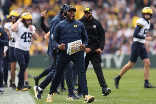 Главный тренер команды «Мичиган Вулверинс» Шеррон Мур празднует тачдаун во время игры против команды «Нортвестерн Уайлдкэтс» 15 ноября в Чикаго, штат Иллинойс. Мифология «Мичиганского человека».